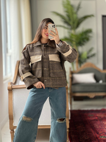 کت فوترزنانه ترکیبی با چرم